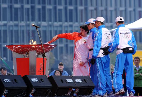 4月3日,在圣火传递终点――塔克希姆广场,最后一棒火炬手、土耳其著名举重运动员、雅典奥运会男子77公斤级金牌得主塔内尔·萨厄尔点燃圣火盆。当日,北京奥运会圣火境外传递第二站在土耳其伊斯坦布尔结束。